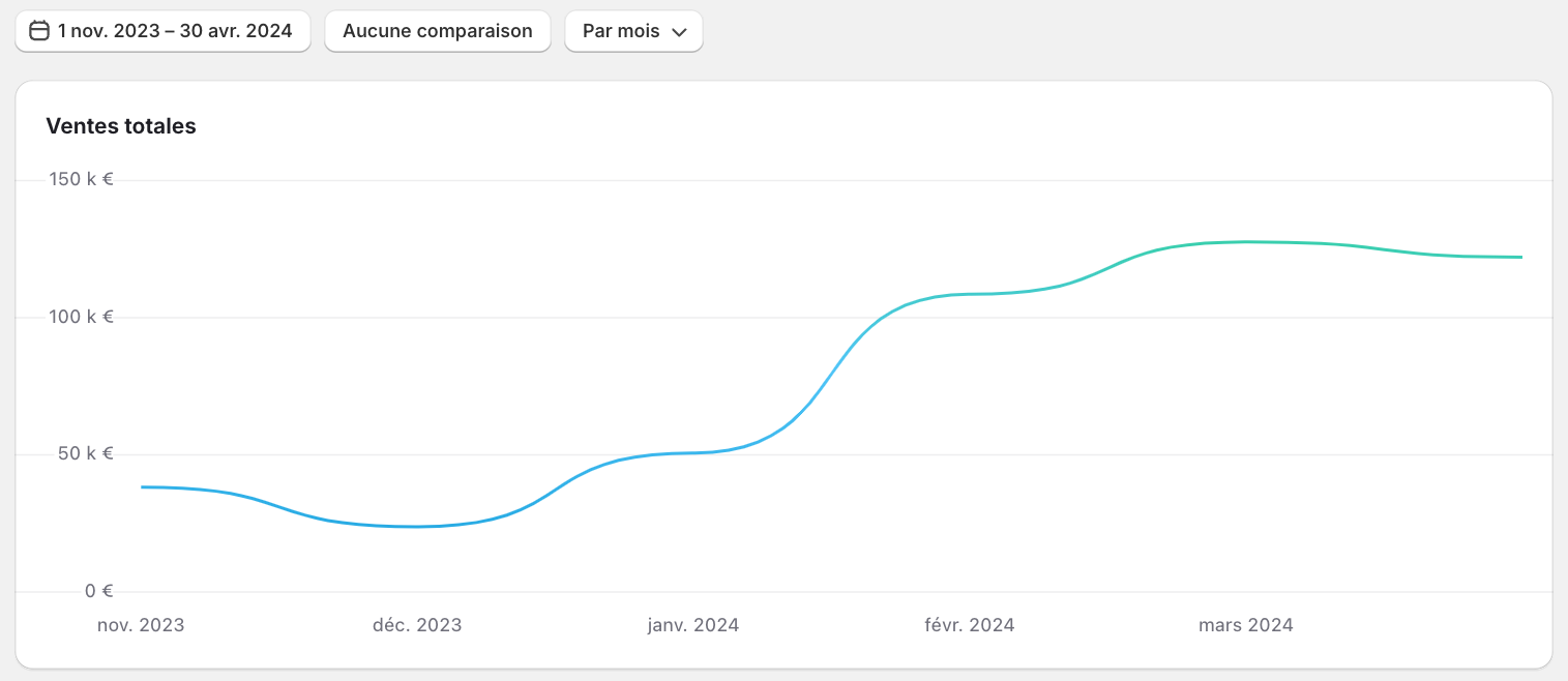 le chiffre d’affaires est passé de 38k€ à 128k€ / mois