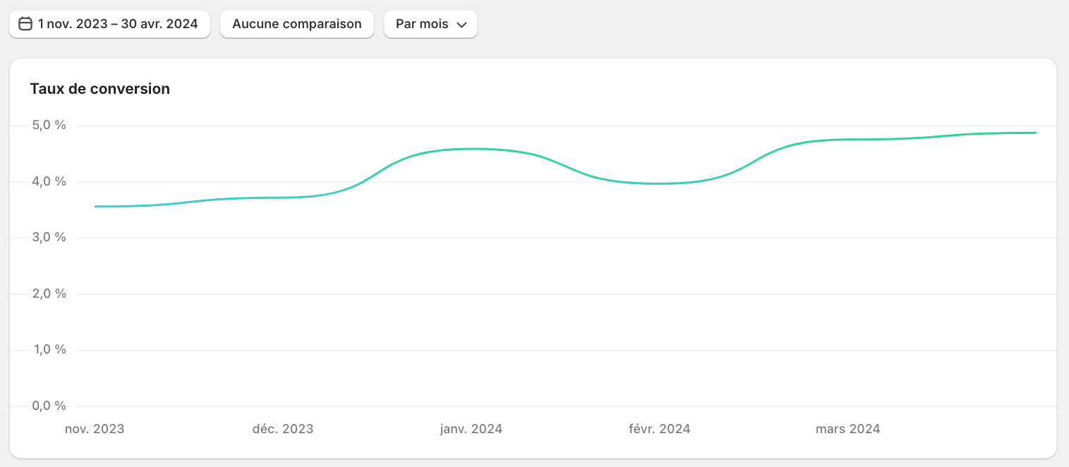 Pour les exemples cités plus hauts, le taux de conversion oscille entre 3% et 5% tout au long de l’année.