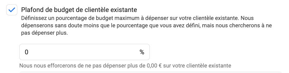 Je mets personnellement 0% pour bien séparer Acquisition et Retargeting / Rétention.
