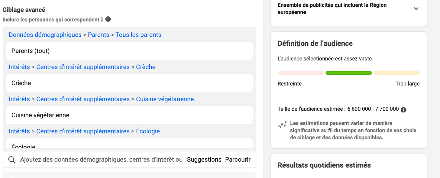 Et sur les gros comptes, je garde actifs les ciblages intérêts qui fonctionnent bien, en parallèle du Broad.
